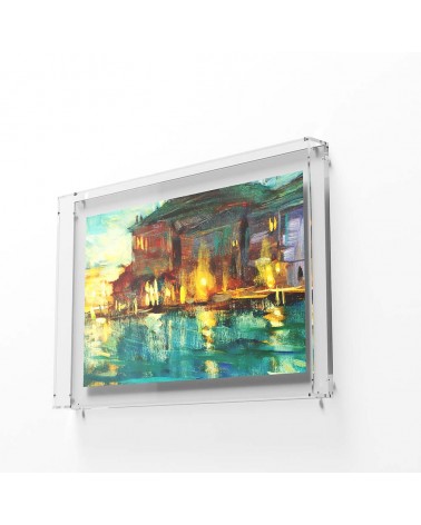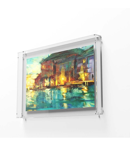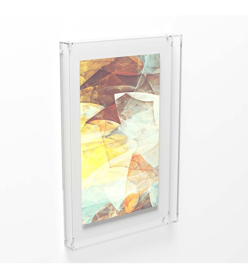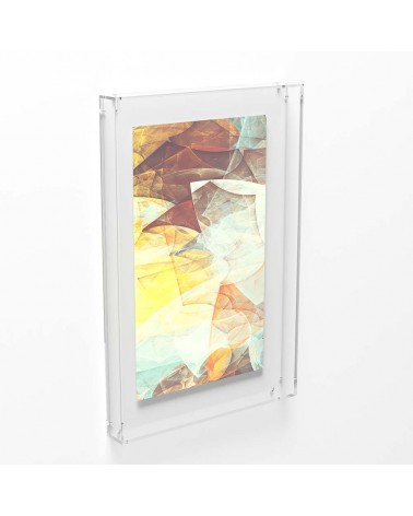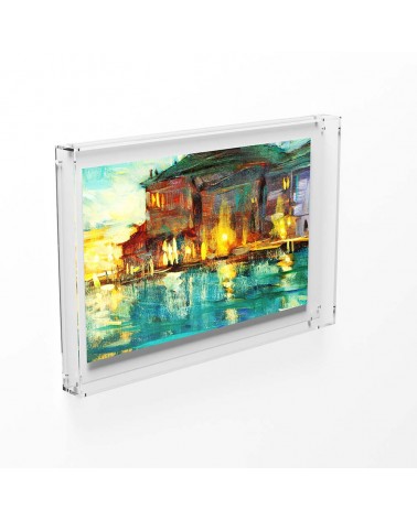 Oggetto semplice e di Design, questa cornice in plexiglass trasparente e costituito da una teca con 5 lati chiusi e late retro aperto.