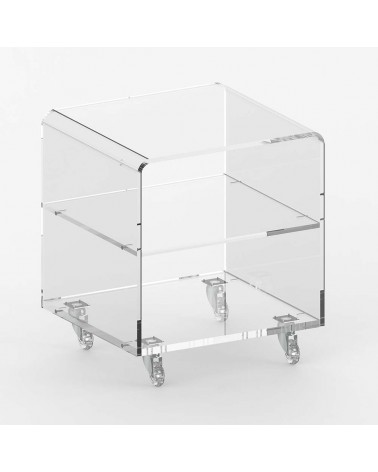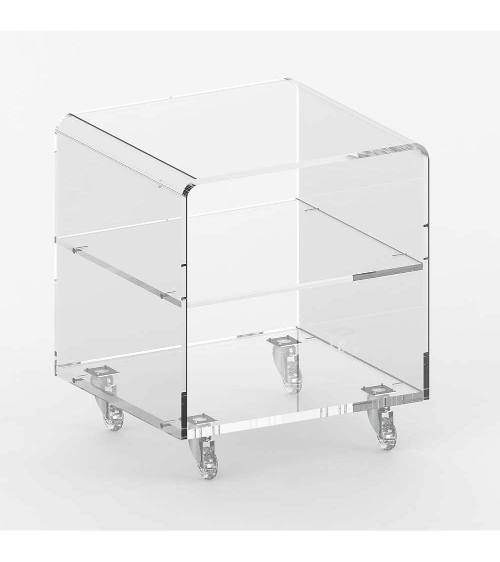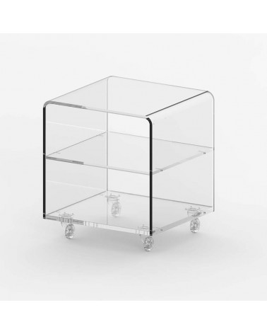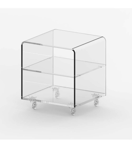 Tavolino portariviste a 3 ripiani in Plexiglass trasparente con rotelle spessore 10 mm - Misure Totali L43xP39xH49 cm